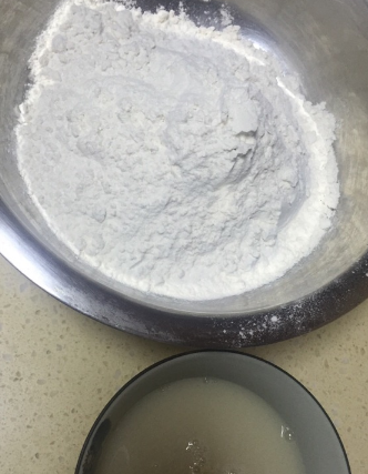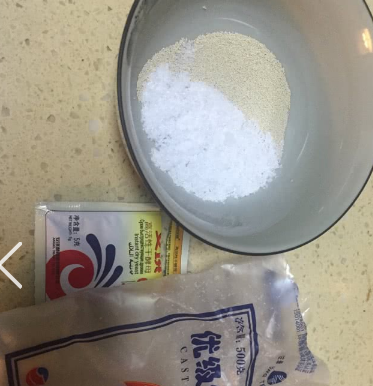 2. 酵母粉+绵白糖+200ml温水混合均匀。