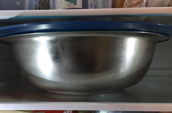 6. 又饧发至近2倍大时盖上盖子或用大尺寸保鲜膜封好直接放进冰箱冷藏室。