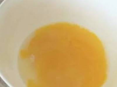 打入两个鸡蛋黄,加适量的淡奶油搅拌一下。