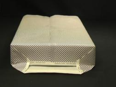 1. 将准备好的条纹纸张裁剪成大约礼物盒两倍的尺寸,把礼物放在纸张中央,纸张背面朝上。