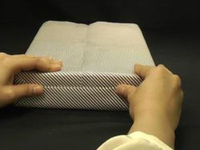2. 将纸张左右两边分别向礼品盒折叠,在中间用双面胶或胶棒粘上。