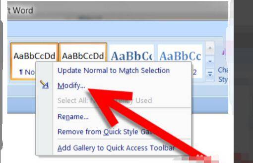 4. 将整篇文章设置为双倍行距点击功能浏览区的“主页”选项卡。在“样式”区域找到“正文”。使用鼠标右键点击“正文“,然后选择“修改”。