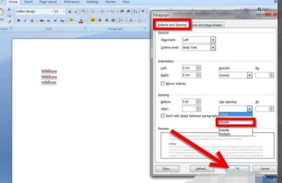 3. 在缩进和间距选项卡中,找到用于设置行距的下拉菜单。选择“2 倍行距”。然后点击确定保存设置。