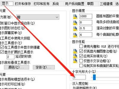 2. 点显示调十字光标大小 找到显示选项卡,将十字光标大小调大。