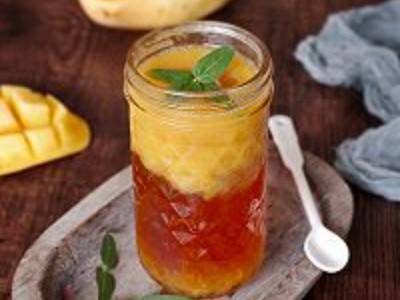 凉透的红茶,加入适量冰块,将打好芒果泥倒入搅拌均匀即可。
