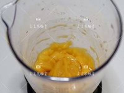 2. 打芒果泥         芒果取出果肉,放入料理机,加入白砂糖、柠檬汁,打成芒果泥。