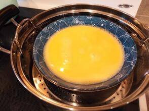5. 装蛋液的碗需要一个盖子,防止锅里的水蒸气倒流进碗里。水开后蒸25分钟即可。