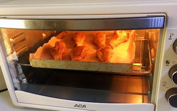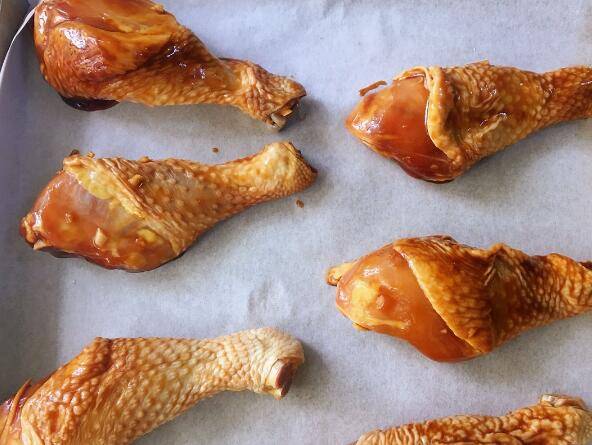 8. 腌好的鸡腿放入垫了油纸的烤盘上。