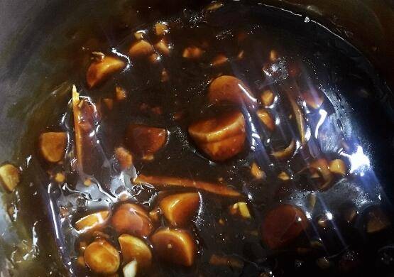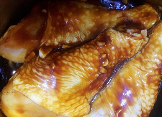 9. 放入预热好的烤箱里,中层上下火180度烤四十分钟左右。中途取出翻面,可以再刷一层酱汁。