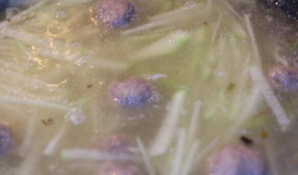 5. 煮开后加萝卜丝,煮至萝卜丝软烂即可,出锅前加少许盐。