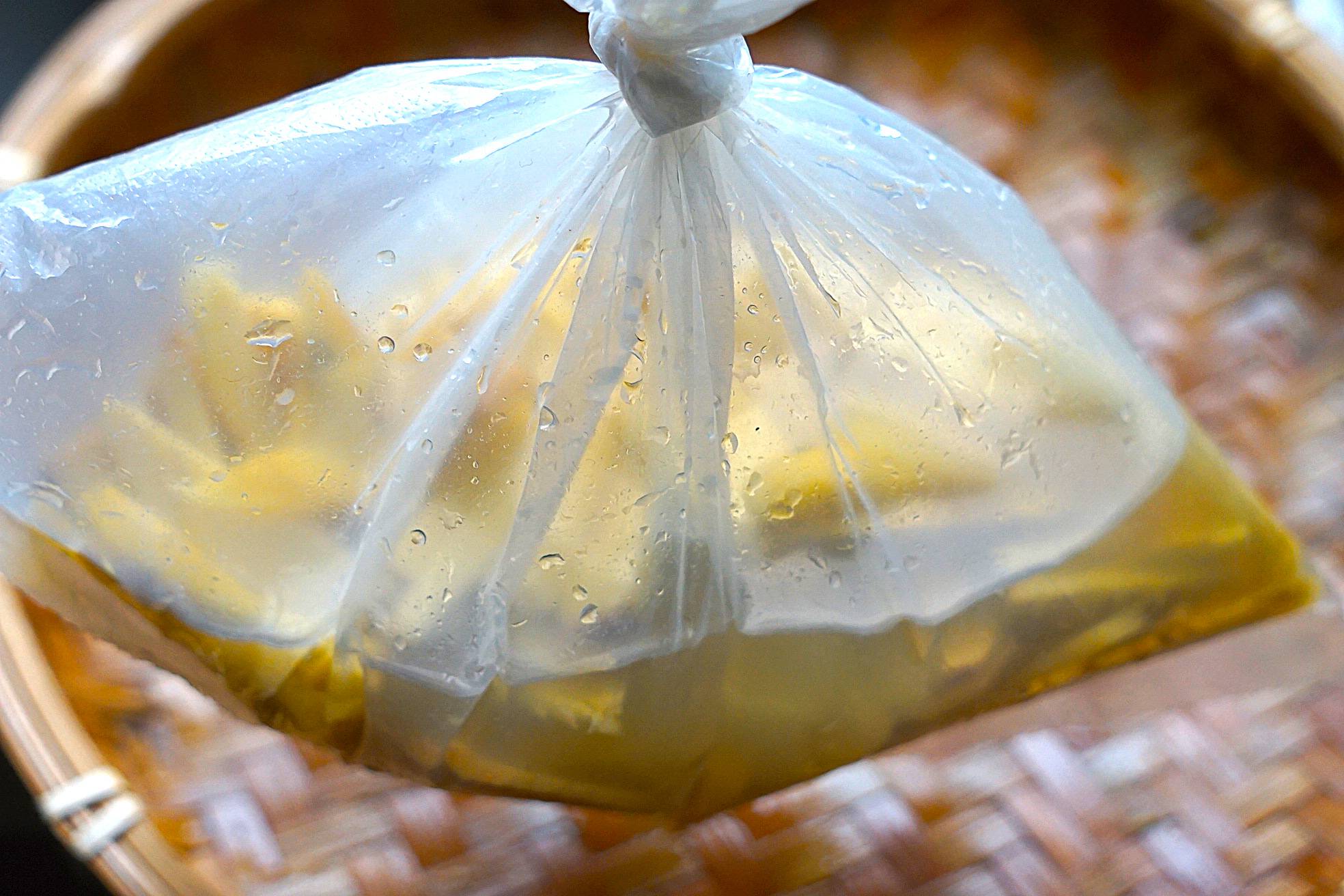 6. 然后将塑料袋放凉后再放入冰箱冷冻保存即可。