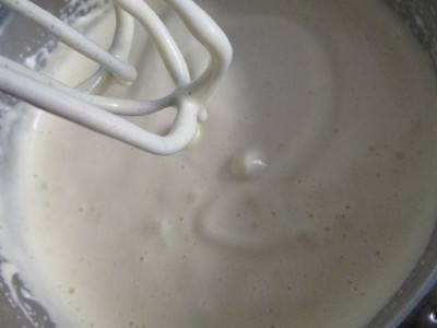 先把鸡蛋打到打蛋盆里,加入白糖,用打蛋器把鸡蛋打发。