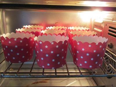 把蛋糕糊均匀的放入小纸杯,8分满。