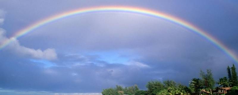 在雨后,空气中充满着无数小小的能偏折日光的水滴。当阳光经过水滴时,不仅改变了前进的方向,同时被分解成红、橙、黄、绿、蓝、靛、紫等色光。如果角度适宜,就成了我们所看到的虹。空气里水滴的大小,决定了虹的色彩鲜艳程度。
