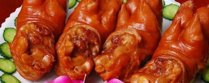 1. 邓城猪蹄:邓城猪蹄是一道色香味俱全的传统名肴,属于豫菜系,源于商水县邓城镇。它以清滑爽口,柔韧脱骨,味醇酥嫩,香气浓郁出名,独具风味,吃过后,唇齿留香。