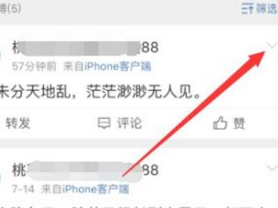 找到要推广的微博,点击右上角的下拉箭头按钮。