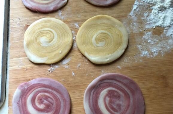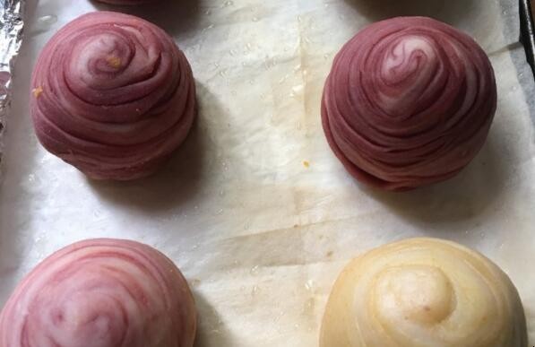 6. 把擀好的油皮包上馅料,虎口收紧,烤箱上下165度烤30分钟。或者上160度,下180度烤25分钟,中间拿出来调换一下方向(怕靠里面的烤焦了,靠外面的还没烤熟),完成。