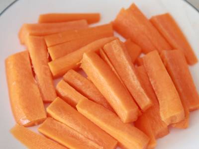 胡萝卜洗净去皮,切成粗细均匀的条状。