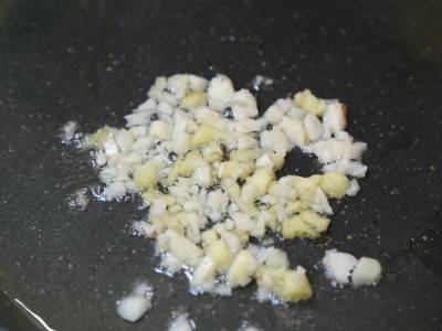 锅中倒油,放入蒜末和姜末翻炒,炒出香味。