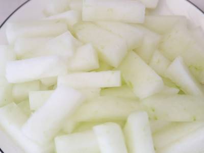 冬瓜去皮去瓤后,切成条状备用。
