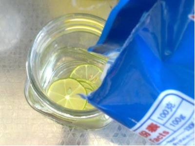 青柠切片,用凉开水冲泡。