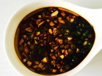 将生抽、香醋、姜蒜末、糖混合即可。