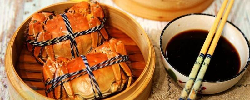 每个螃蟹上放一片姜、一个葱结、一段紫苏、适量蒜末。