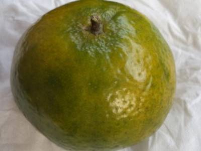 用纸巾把将外皮擦干净,用小刀在柑橘底部三分之一的地方,拉开,不要拉到顶部,要留一小部分。