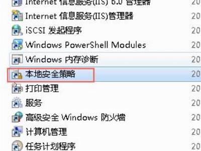在管理工具中点击“本地安全策略”选项,选择“用户权利分配”。