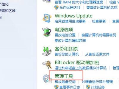 在开始菜单中点击“控制面板”,点击控制面板中的“管理工具”。