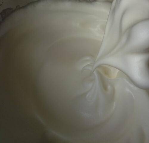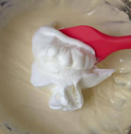4. 蛋白分三次加入蛋黄糊中,搅拌均匀。