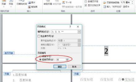 4. 在页码编号下面选择“起始页码”,并在后边输入“0”,然后点击确定即可。