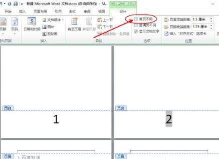 2. 在页眉页脚设计工具中,勾选“首页不同”选项。