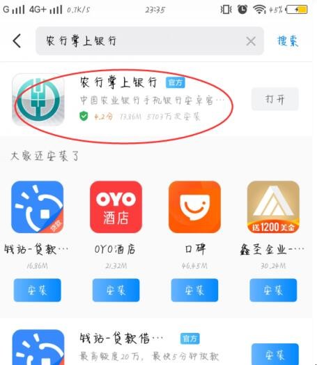 2. 进入手机自带的营业商城,下载“农行掌上银行”。