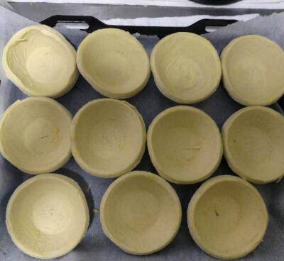 牛油蛋挞挞皮比较光滑和完整,好像一块盆状的饼干,有一阵牛油香味,类似西点常用之馅批底皮,口感像曲奇一样,所以又有曲奇皮之称。
