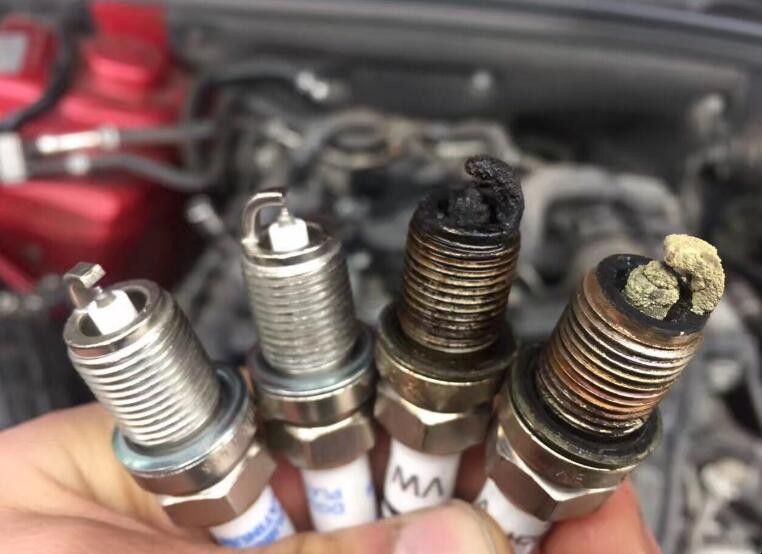 3. 观察外观颜色判断:赤褐色或铁锈色,表明火花塞正常;如果是油渍状,表明火花塞间隙失调或者供油过多,高压线短路或者断路;如果是烟熏过的黑色,表明火花塞冷热型选错或混合气浓,机油上窜。