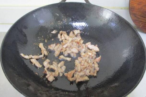 5. 再把猪肉丝回锅,烹入少许开水不断的翻炒至熟。