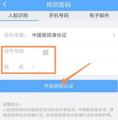 4. 进入“找回密码”界面,使用“人脸识别”找回密码,输入个人信息即可。
