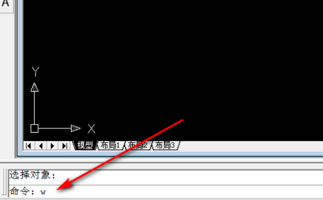 2. 画好图形后,在命令栏中输入命令W,然后按空格键确定。