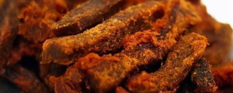 5. 炸牛肉:将牛肉切片入水煮滚后晾干,经油炸并加佐料红烧而成,肉色金黄、鲜嫩味美,密封可保存很长时间。一般有远方亲朋来和县,临走都要带上两罐。