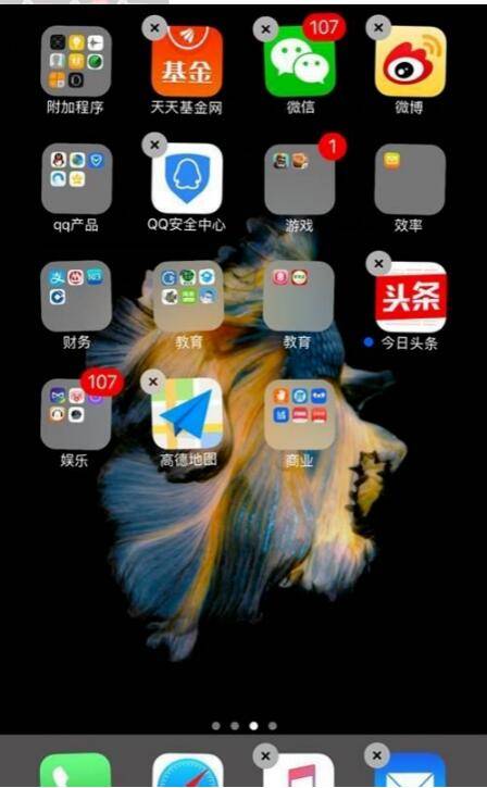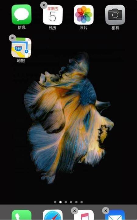 3. 移完原先最后一页图标之后,再往前一页,继续用前面的方法往后一页移动图标。依此类推操作直到剩下第一页的图标,一般第一页看到的默认都是苹果自带的软件。