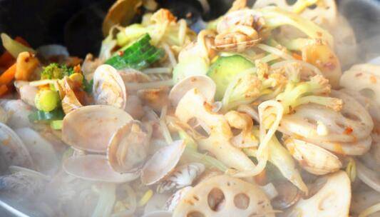 1. 准备食材:花蛤400克、蘑菇10个、黄瓜半根、豆芽30克、西兰花1朵、菜花1朵、莲藕50克、平菇、麻辣香锅底料35克、花生油25毫升、蒜5粒、葱1棵、姜5片、盐2克。