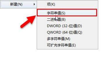 4. 在左边的窗口的空白处右击,选择“新建”目录下的“字符串值”。