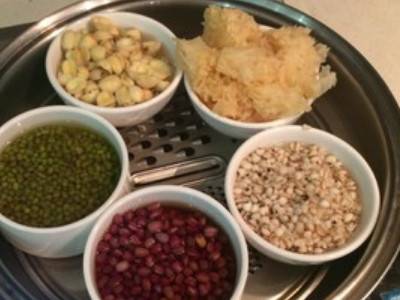 莲子、银耳、红豆、绿豆、薏米洗净,隔水蒸20分钟。