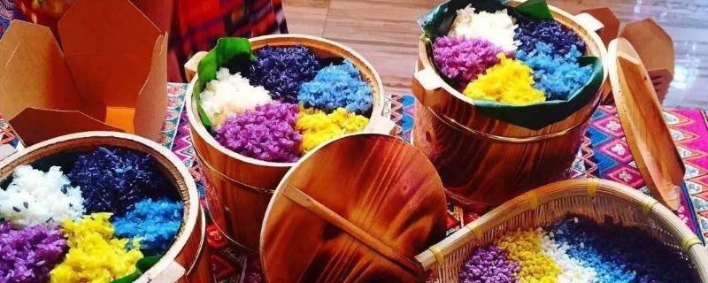 1. 五色香糯米饭:五色饭是壮族人民记倚幸福、美好、和谐、吉祥、如意的象征。
