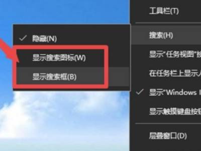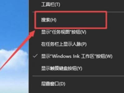 右击底部任务栏任意空白位置,然后点击搜索。