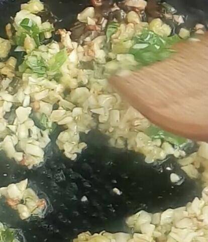 3. 锅中放油,把葱、姜、蒜末炒香。