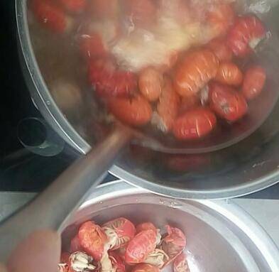 2. 将龙虾尾洗净焯水1分钟捞出备用。