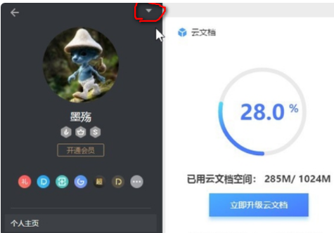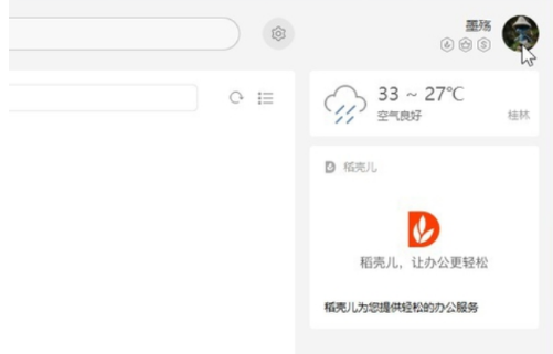 2. 在WPS程序主界面的右侧找到个人账户的头像,点击打开。