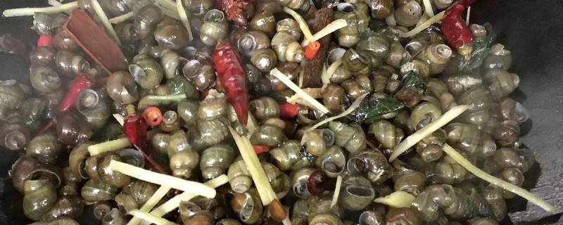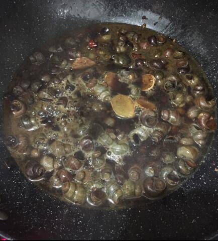 5. 炒5分钟后,放两勺老抽,盐(炒菜的两倍,要不不入味),老抽滚了后加开水,漫过螺丝,盖锅盖焖。